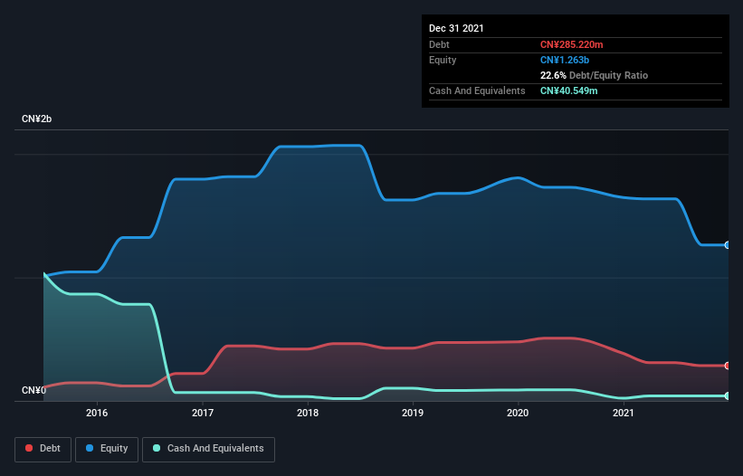As you can see below, ArtGo Holdings had CN¥285.2m of debt at December 2021, down from CN¥384.7m a year prior. However, it also had CN¥40.5m in cash, and so its net debt is CN¥244.7m.